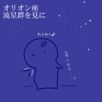 この間の部分日食と同じように「オリオン座流星群」を密かに楽しみにしてました
